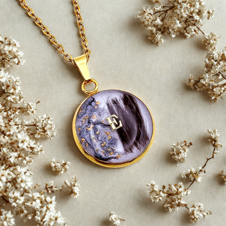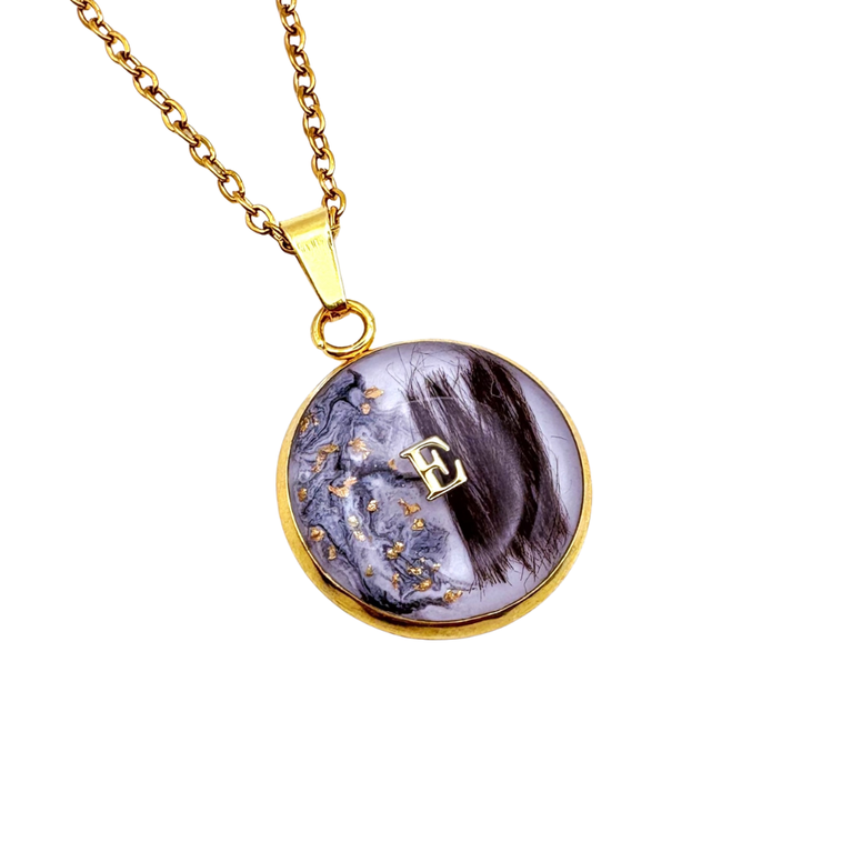 Personalisierung: Mit Fell, Asche, Mähne, Schweif, Schnurrhaar, Feder, Zahn oder Kralle möglich, sowie Initialen. Farbe der Marmorierung & Blattmetallfarbe sind wählbar.